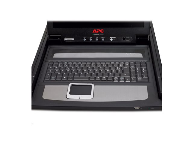 The Rack LCD Console features a 17" LCD panel, a full keyboard, and a touch pad in a rackmountable sliding housing. The Rack LCD Console is intended for use with compatible target devices (a KVM switch or server). The device is easily installed and minimizes support and maintenance costs, ensuring lower cost of ownership. The ultra-thin LCD screen, touchpad technology, and easy-to-install slide rails combine to form a high-quality, streamlined solution built for server management. The Rack LCD can be used in a variety of IT environments, from computer rooms to large data centers.