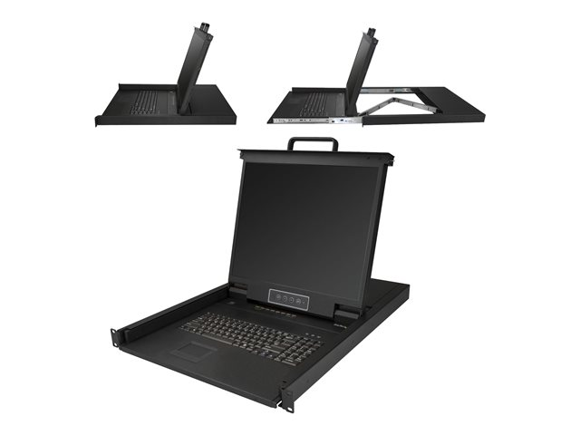 StarTech.com 8-ports rackmonterad KVM-konsol med 1,8 m kablar - Integrerad KVM-switch med 19-tums LCD-skärm - 1U LCD KVM-låda - OSD KVM - Hållbar 50 000 MTBF - USB + VGA-support - KVM-konsol med omkopplare för tangentbord/video/mus - 8 portar - PS/2, USB - USA - engelska (QWERTY) - 19" - kan monteras i rack - 1280 x 1024 - 250 cd/m² - 1000:1 - VGA - svart - 1U