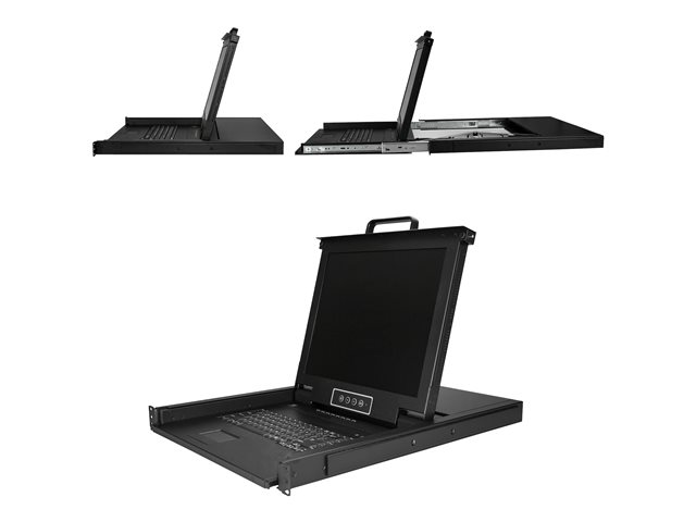 StarTech.com 8-ports rackmonterad KVM-konsol med 1,8 m kablar - Integrerad KVM-switch med 17-tums LCD-skärm - 1U LCD KVM-låda - OSD KVM - Hållbar 50 000 MTBF - USB + VGA-support - KVM-konsol med omkopplare för tangentbord/video/mus - 8 portar - USB - 17" - kan monteras i rack - 1280 x 1024 @ 60 Hz - 250 cd/m² - 1000:1 - 5 ms - VGA - svart - 1U