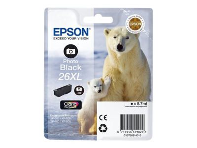 Epson 26XL - 8.7 ml - XL - foto-svart - original - blister med RF-larm/akustiskt larm - bläckpatron - för Expression Premium XP-510, 520, 600, 605, 610, 615, 620, 625, 700, 710, 720, 800, 810, 820