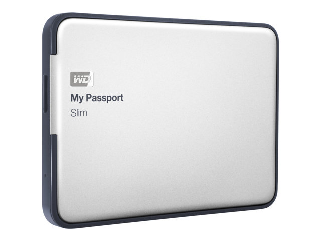 My Passport Slim portable hard drive features WD SmartWare Pro backup software for local or cloud backup, a beautiful, ultra-slim metal design, the blazing speed of USB 3.0 connectivity and the security of password protection with hardware encryption.