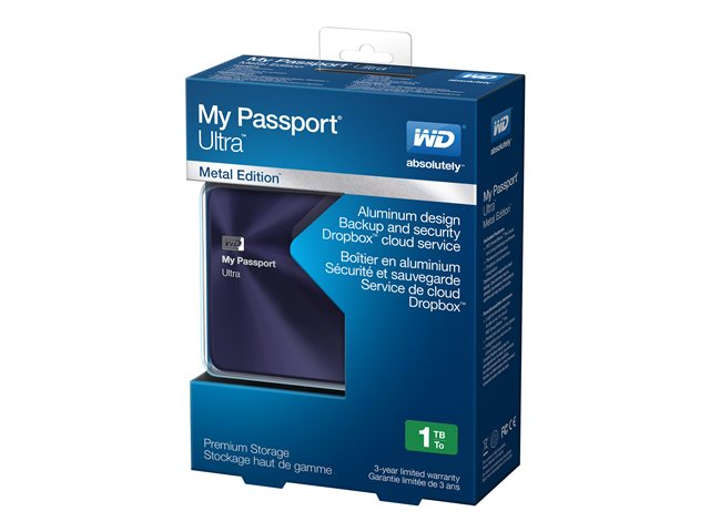 WD My Passport Ultra Metal Edition WDBTYH0010BBA - Hårddisk - krypterat - 1 TB - extern (portabel) - USB 3.0 - blåsvart