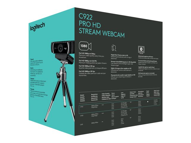 Logitech HD Pro Webcam C922 - Webbkamera - färg - 720p, 1080p - H.264