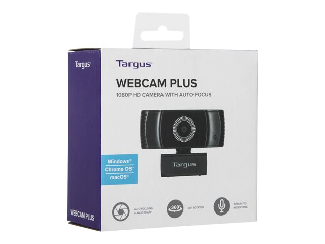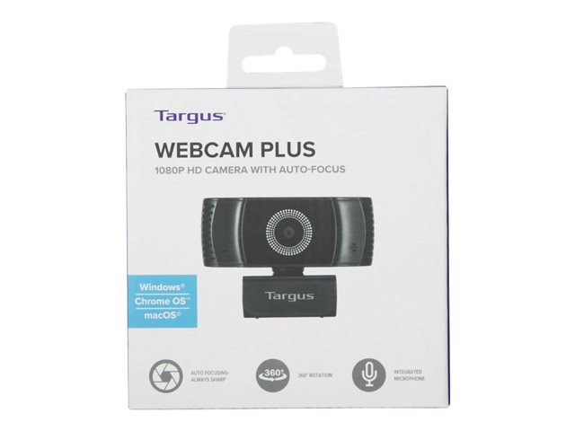 Targus Webcam Plus - Webbkamera - färg - 2 MP - 1920 x 1080 - 1080p - ljud - USB 2.0 - MJPEG, H.264, H.265