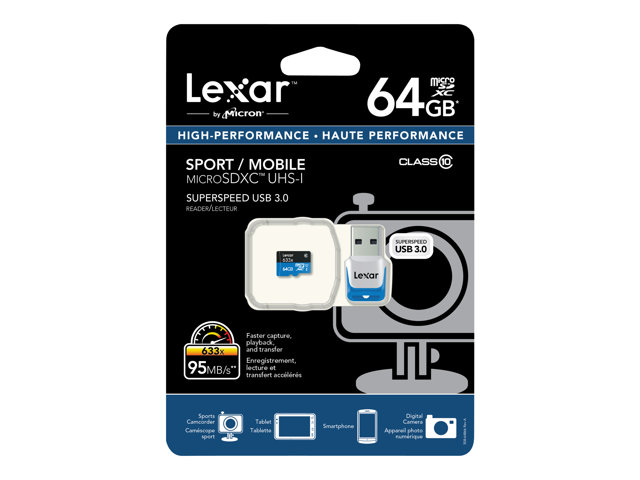 Lexar High Performance - Flash-minneskort - 64 GB - UHS Class 1 / Class10 - 633x - mikroSDXC UHS-I