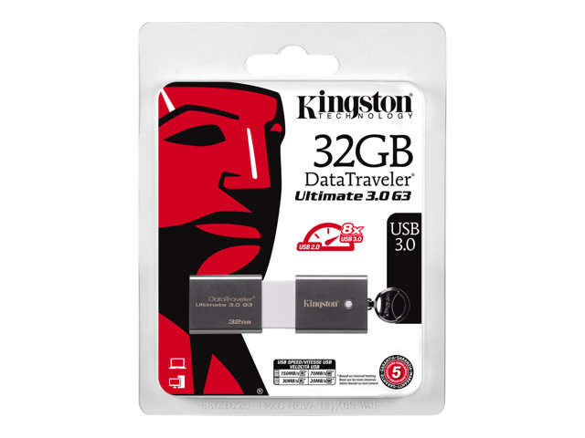 Kingston's DataTraveler Ultimate 3.0 Generation 3 (DTU30G3) features USB 3.0 technology, which enables incredible data transfer speeds up to 150 Mbps read and 70 Mbps write (in USB 3.0). Now you can transport high-resolution photos, HD videos, music and more with incredible speed and ease. Its attractive, capless design complements mac products and other stylish mobile devices.