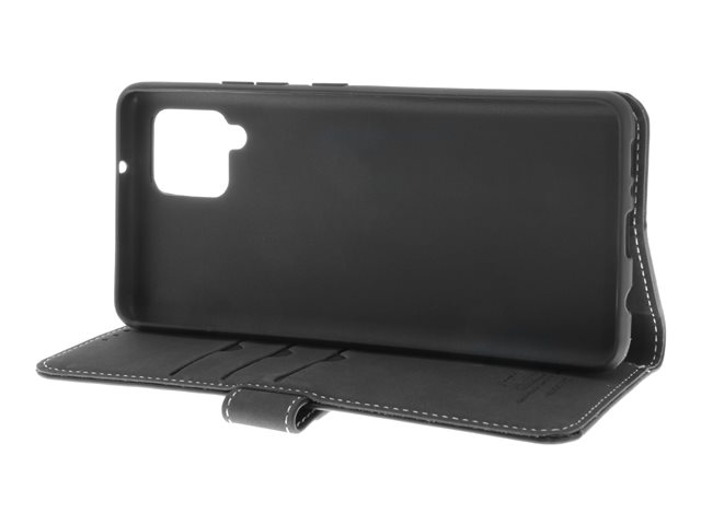 Insmat - Vikbart fodral för mobiltelefon - genuint läder, polykarbonat - svart - för Samsung Galaxy A42 5G