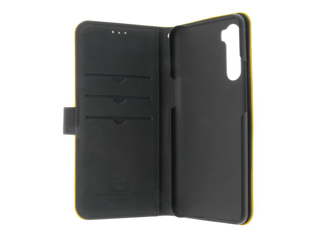 Insmat - Vikbart fodral för mobiltelefon - genuint läder, papper, kartong, polykarbonat, bomull, aluminiumfolie - humlegul - för OnePlus Nord