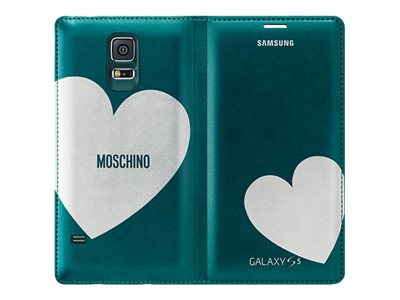Samsung Flip Wallet EF-WG900R - Moschino Edition - vikbart fodral för mobiltelefon - grön/silverhjärta - för Galaxy S5, S5 Neo