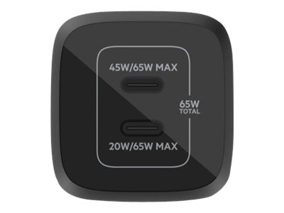 Belkin BoostCharge Pro - Strömadapter - PPS-teknik - 65 Watt - 3.25 A - PD 3.0, Fast Charge - 2 utdatakontakter (USB-C) - svart