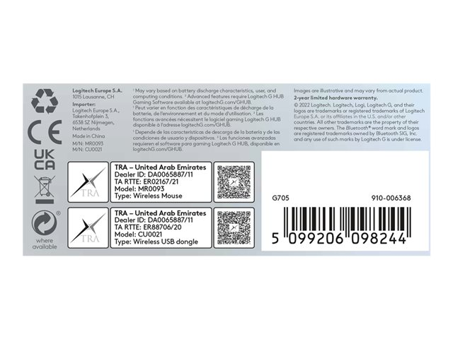 | Egenskaper | LIGHTSYNC-teknik, 6 programmerbara knappar, återuppladdningsbart batteri |