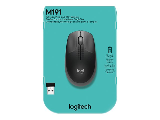 Logitech M190 - Mus - optisk - 3 knappar - trådlös - trådlös USB-mottagare - träkol