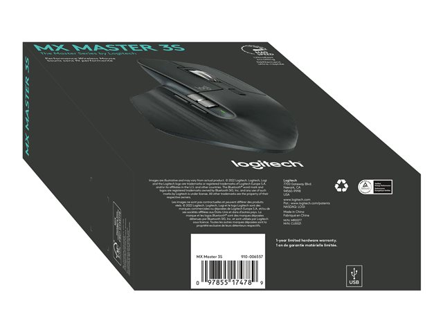Logitech Master Series MX Master 3S - Mus - ergonomisk - optisk - 7 knappar - trådlös - 2.4 GHz, Bluetooth - Logitech Logi Bolt USB-mottagare - grafit