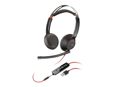 HP Poly Blackwire C5220 - Blackwire 5200 series - headset - på örat - kabelansluten - USB-A, 3,5 mm kontakt - svart - Certifierad för Microsoft-teams, Certifierad för Skype for Buisness, Certifierad för Zoom Rooms, Cisco Jabber-certifierad, Avaya-certifierad