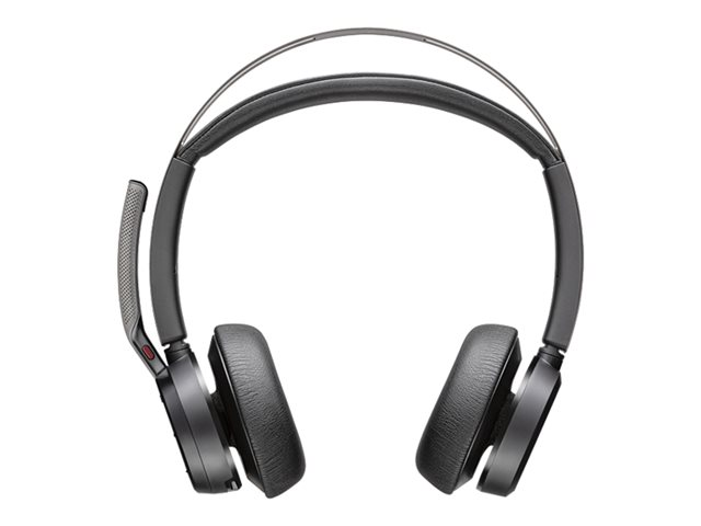 Poly Voyager Focus 2 UC - Headset - på örat - Bluetooth - trådlös, kabelansluten - aktiv brusradering - USB-A - med laddningsställ - Certifierad för Microsoft-teams