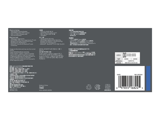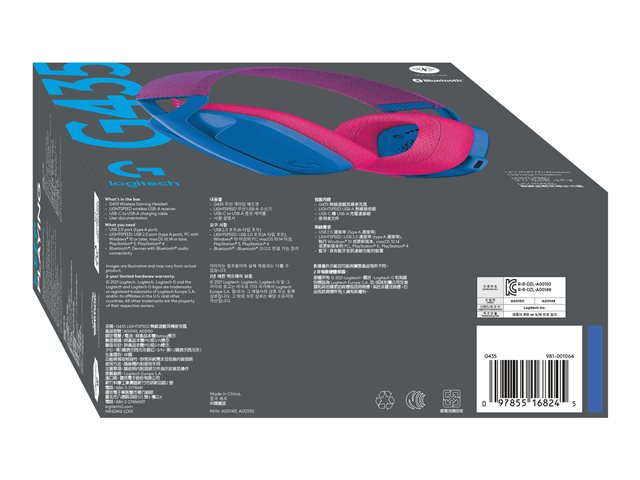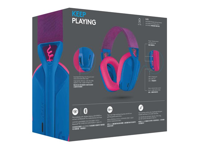Logitech Lightspeed G435 - Headset - fullstorlek - Bluetooth/radiofrekvens 2,4 GHz - trådlös - blå - Discord-certifierad