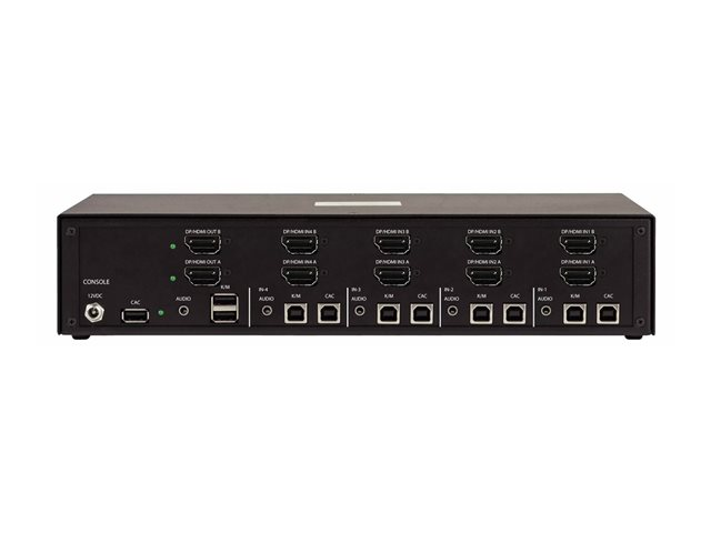 | Gränssnitt | 8 x DisplayPort/HDMI-ingång hona 4 x CAC-ingång Type B common access card (CAC) 4 x tangentbord/mus Type B 4 x ljudinmatning telefon stereo 3,5 mm hona 2 x DisplayPort/HDMI-utgång 2 x tangentbord/mus Type A 1 x ljudutmatning telefon stereo 3,5 mm 1 x USB-utgång Type A vanlig åtkomstkort (CAC), för användare |