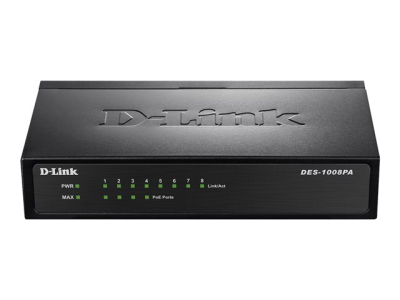 D-Link DES 1008PA - Switch - ohanterad - 4 x 10/100 (PoE) + 4 x 10/100 - skrivbordsmodell - PoE