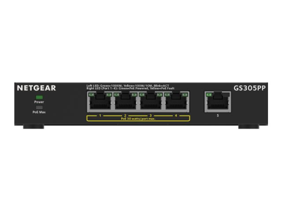 NETGEAR 300 Series GS305PP - Switch - SOHO - ohanterad - 5 x 10/100/1000 (4 PoE+) - skrivbordsmodell, väggmonterbar - PoE+ (83 W)