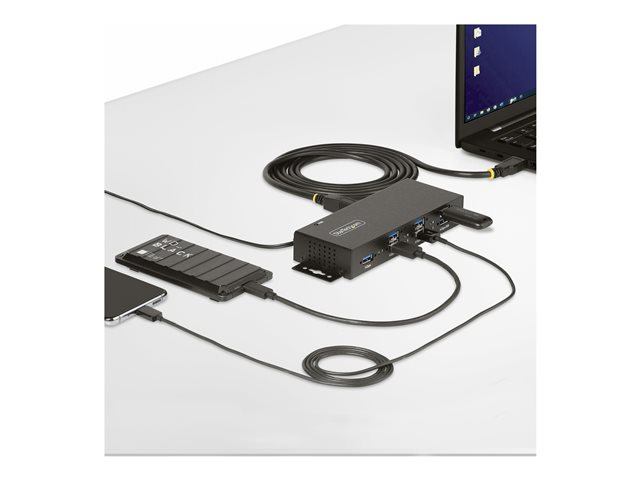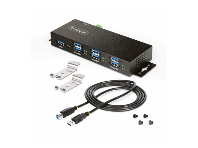 StarTech.com 7-Port Managed USB Hub with 7x USB-A, Heavy Duty with Metal Industrial Housing, ESD & Surge Protection, Wall/Desk/Din-Rail Mountable, USB 3.0/3.1/3.2 Gen 1 5Gbps - Hubb - 6 x USB 3.2 Gen 2 + 1 x USB 3.2 Gen 1 - väggmonterbar, skrivbordsmodell, DIN-skenmonterbar - TAA-kompatibel