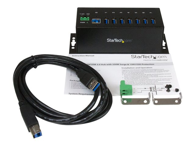 StarTech.com USB 3.0-hubb med 7 portar - Industriell USB-A-hubb i metall med ESD-skydd och 350 W överspänningsskydd - Monterbar på DIN-skena, vägg eller skrivbord - TAA-kompatibel USB-expansionshubb - Hubb - 7 x SuperSpeed USB 3.0 - DIN-skenmonterbar, väggmonterbar - likström - för P/N: ITB20D3250, USB312SAT3CB, USB315CB2M, USBLT1MWS, USBLT2MBR, USBLTM1MBK, USBLTM1MWH