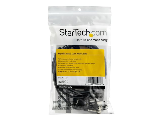StarTech.com 2 m kabellås med nycklar för bärbar dator - Säkerhetskabel med nycklar för K-Slot-enheter bärbara/stationära datorer/skärmar och andra enheter - Stöldskydd med vinylbelagd stålkabel och lås - Lås för säkerhetskabel - svart, silver - 2 m