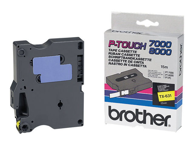 Brother TX631 - Svart på gult - Rulle (1,2 cm x 15 m) 1 kassett(er) bandlaminat - för P-Touch PT-30, PT-7000, PT-8000, PT-PC
