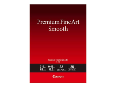 Canon Premium Fine Art Smooth A3-papper är utvecklat för att ge en djup, fyllig svart färg genom att pigmentet fixeras nära pappersytan med den ursprungliga bestrykningsmetoden. I kombination med äkta Canon LUCIA PRO-bläck, där bläckformuleringen har optimerats, blir utskrifterna fylliga i färg och svart densitet. Tack vare papperets 100-procentiga bomullsbas garanteras en lång bildlivslängd och hög hållbarhet.