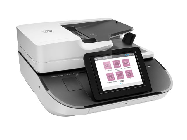 | Funktioner för skanner | Skanna till portabel USB-enhet, Automatic Image Orientation, automatisk färgdetektering, Auto Crop, inbyggd High Performance Secure-hårddisk, 8-tums pekskärms-TFT-display, Ultrasonic Multi Feed Detection, inbyggt tangentbord, Hardware Integration Pocket (HIP), HP EveryPage, OCR Text Recognition |