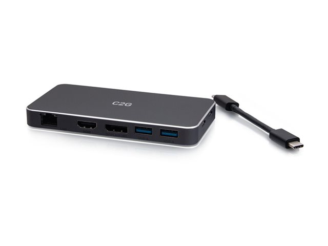 C2G USB-C 7-in-1 Dual Display MST Docking Station with HDMI, DisplayPort, Ethernet, USB, and Power Delivery up to 100W - 4K 60Hz - dockningsstation - USB-C - HDMI, DP - 1GbE