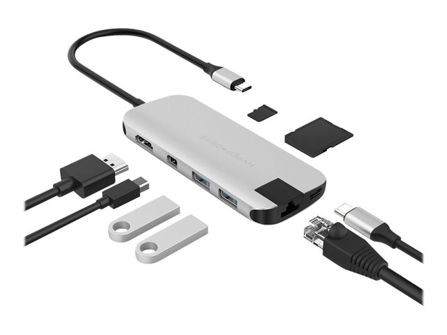 HyperDrive Pro 8-in-2 Hub - Dockningsstation - USB-C x 2 - HDMI, Mini DP GN28D-SILVER