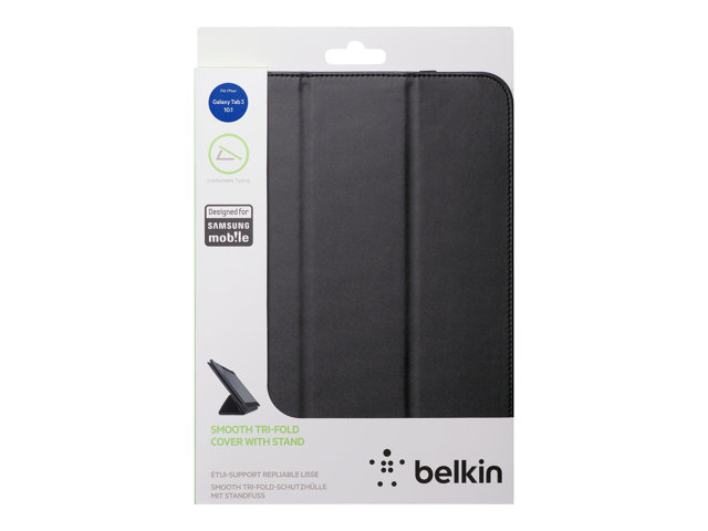 Belkin Smooth Tri-Fold Cover with Stand - Fodral för surfplatta - tyg - svart - för Samsung Galaxy Tab 3 (10.1 tum)