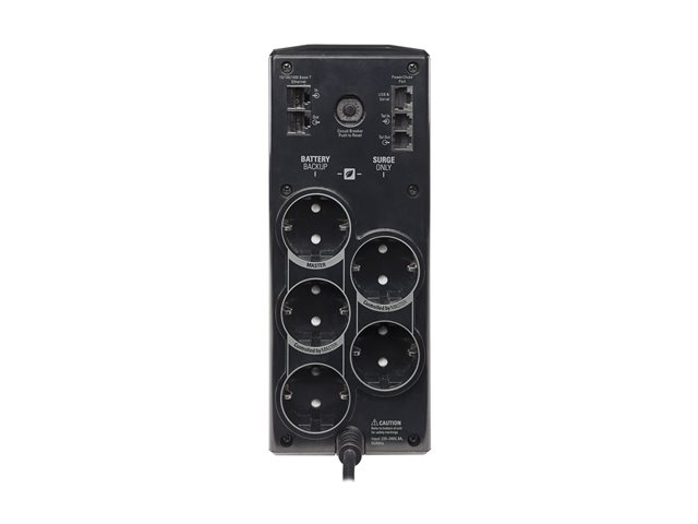 | Kontaktdetaljer för uteffekt | 3 x power CEE 7/7 (UPS och spänningsutjämnare) 2 x power CEE 7/7 (spänningsutjämnare) |